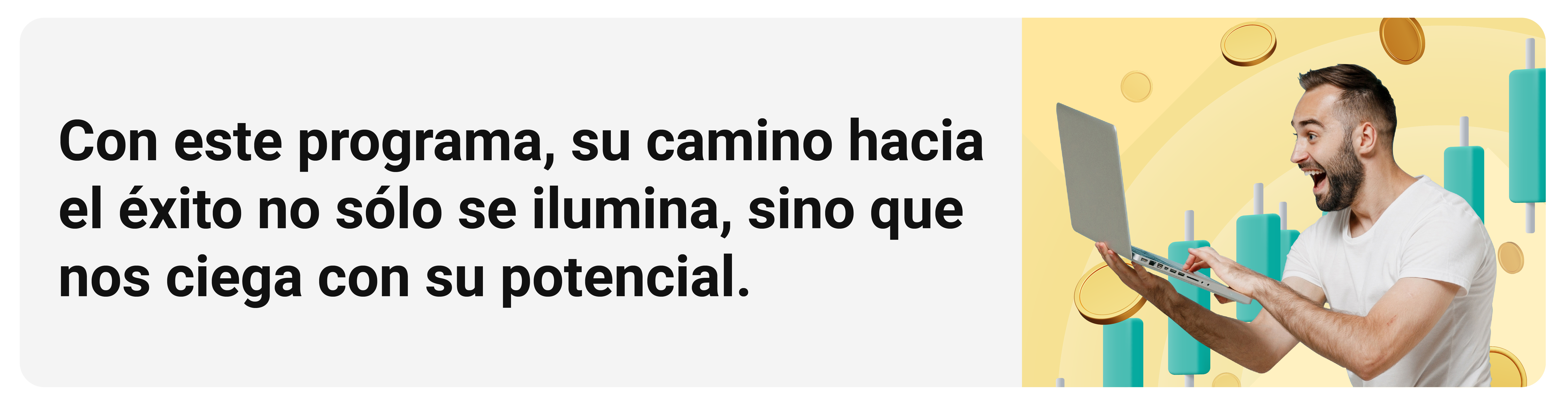 Cada compra de un curso viene con un reembolso. Así es: ofrecemos reembolsos en compras de cursos para financiar su cuenta de operaciones. Imagínese aprender a operar y obtener un reembolso en efectivo para iniciar su viaje comercial.